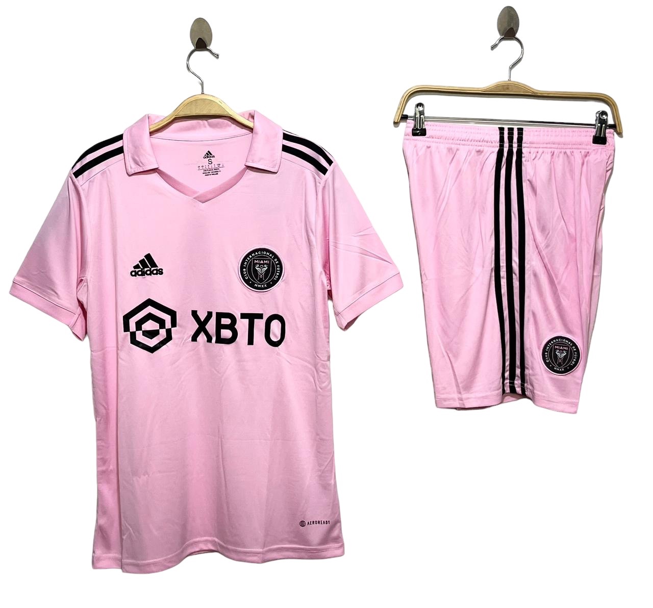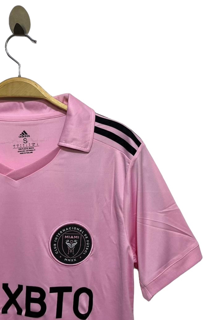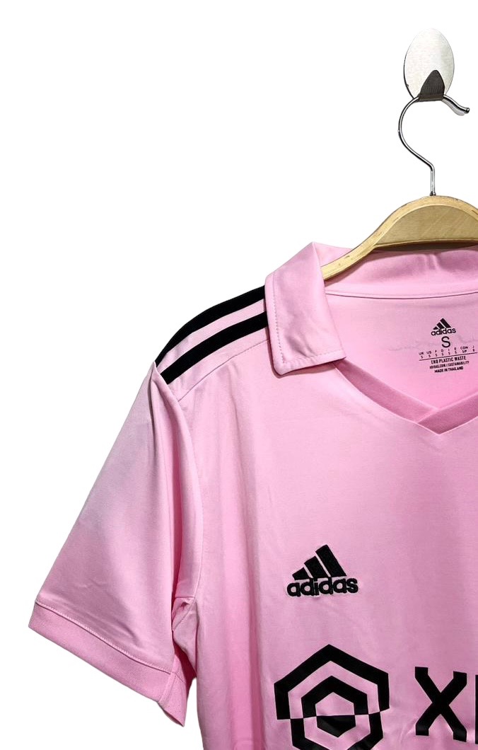 • يأتي طقم انتر ميامي الاساسي بشعارات رسمية للنادي ورعاة الفريق.